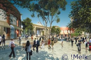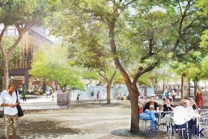 Deze situatie, waarin van een openbare ruimte bijna geen sprake is, begint te veranderen. Met dank aan een in new York gevestigde, Nederlandse landschapsarchitect, Jerry van Eyck (!Melk) en met geld van MGM (dat een groot deel van de Strip bezit) wordt momenteel gebouwd aan een park aan de Strip, zie de foto’s hierboven. Las Vegas krijgt voor het eerst een openbaar park, met bomen, pleinen en terrasjes. Waar je voor je plezier kunt verblijven in de koelte van de schaduw van bomen; om andere mensen te ontmoeten, om uit te rusten en om wat te eten of te drinken. In 2016 moet het park klaar zijn. Van Eyck was vorige week in Nederland en lichtte het ontwerp toe bij BNR.