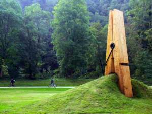 Maar hoe zit het nu met humor in parken en op pleinen? Lastig. Op zoektermen als ‘humor in de groene openbare ruimte’, ‘humor in public space’, ‘fun public space’, komen weinig bruikbare hits. Vaak leiden ze naar kunst in de groene openbare ruimte. Daar zitten best lollige dingen tussen, zoals het werk van kunstenaar Mehmet Ali Uysal in een Belgisch park (foto) of van kunstenaar Robert Rickhoff (foto). De foto’s van Rickhoff blijken overigens geen echte ingrepen te zijn maar gemanipuleerde foto’s. Jammer!