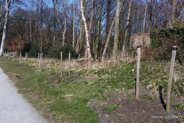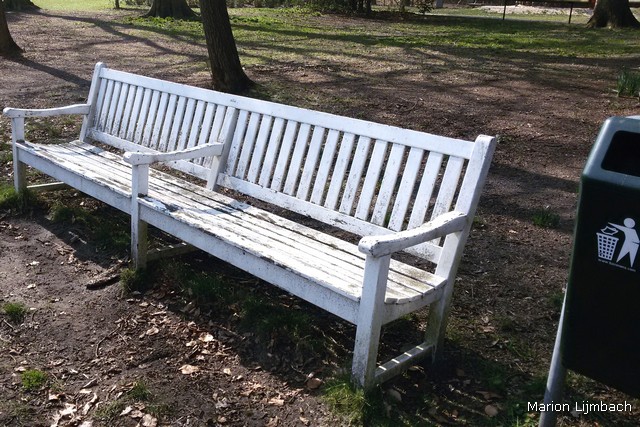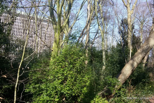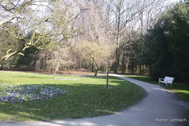 Hoe erg ik het ook vind om te zeggen: ik vind het geen mooi park, het laat een ambivalente indruk achter. Het is een ‘succesvol’ park, want goed bezocht, maar het wordt minimaal onderhouden. Aan hoofdingang aan de Wassenaarseweg staat een mooi ijzeren hekwerk uit de 18e eeuw, daarachter ligt een breed, recht pad. Deze entree schept de verwachting van een statig, ‘Haags’ stadspark. Dat is het niet. Er ligt veel dood hout. De klimop groeit er overheen en bedekt grote stukken grond. Het onkruid tiert welig. Hier en daar steken er plukjes krokussen en witte anemonen uit. Dat dan weer wel. Er wordt wel onderhoud gepleegd door de gemeente, want aan weerszijde van het brede pad zijn een paar jonge bomen aangeplant. Enkele ervan zijn dood gegaan en weggehaald. Maar de boompalen laten ze staan.