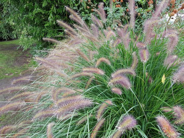 Op nummer 4 de pennisetum, of te wel lampenpoetsersgras. Als ik er langs loop moet ik gewoon altijd even de zachte aren aanraken. Het is een sierlijk grassoort, die zich gemakkelijk laat toepassen. En het in mijn tuin erg goed doet. De pluimen komen ook zo mooi open, de rollen zich langzaam uit. En zo heerlijk zacht dus.