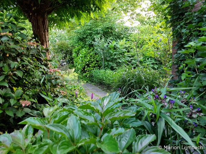 Ik laat me echter niet kennen en zodra ik weer tijd heb duik ik, met plezier – gek genoeg, de tuin weer in. Stukje bij beetje krijg ik dan toch weer enig overwicht over al dat weelderige groen. ‘Enig’ want echt overwicht heb ik natuurlijk niet. In mijn ooghoeken zie ik dat, toen ik even wegkeek, in een hoekje van de tuin toch weer de nodige brandnetels zijn opgekomen. Ik laat dat maar zo, ik heb er eigenlijk geen last van en wie weet help ik er nog een vlinder mee. Ook de klimop-heg laat ik met rust: er zitten heggenmussen met hun jongen in. De uitlopers laat ik gewoon over de stoep lopen. Ach ja, een klusje voor later. Loslaten kan bevrijdend zijn!