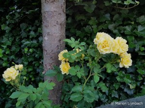 Het is niet alleen hard werken, het is ook hard genieten. Van alle bloemen, kleuren, geuren en vormen. Van de gele klimroos die na jaren van een kwijnend bestaan nu een zee van bloemen heeft. Van de krentenboom die nog nooit zoveel bessen heeft gedragen. Van de aardbeienplanten die mij bijna dagelijks een heerlijk en gezond tussendoortje geven. Of van de bananenboom die in hoog tempo zijn grote bladeren uitvouwt. Stiekem denk ik dat alle planten hun uiterste best doen zich op hun mooist aan mij te laten zien. En dat maakt me heel blij.